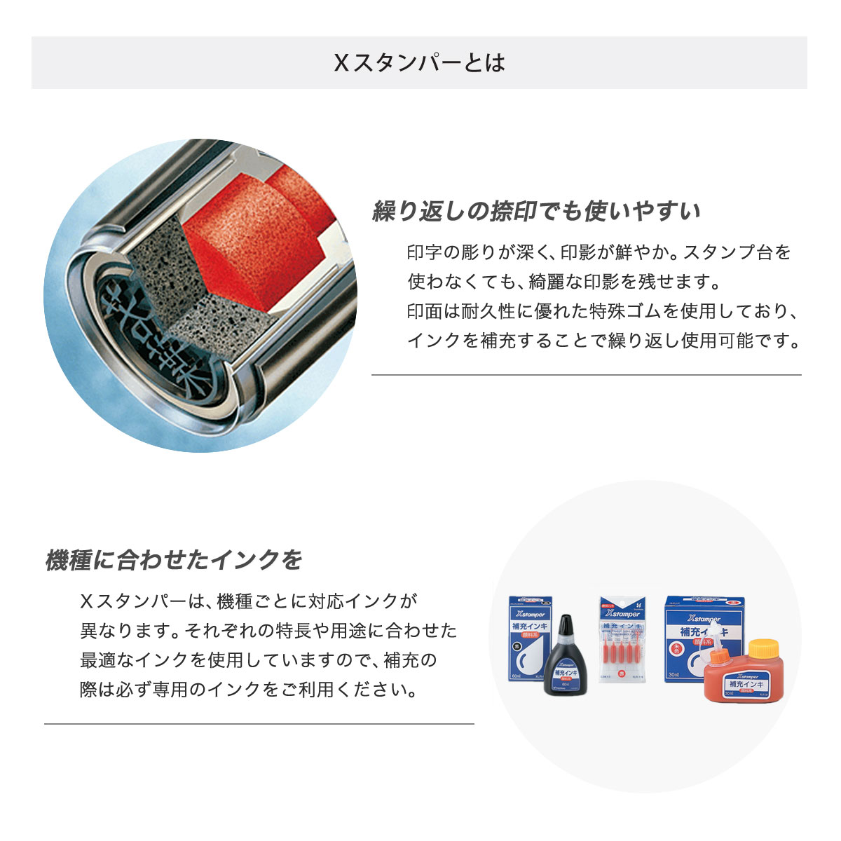 Xスタンパーは、機種ごとに使用インクが異なります。補充の際は必ずこの商品と適合するインク(ページの下部に記載しています)をご利用ください。