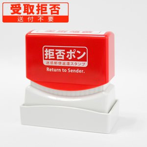 - 拒否ポンをおす時は、郵便物の表面の目立つ位置に捺印してください。 郵便物の色が赤色や濃い色の場合は目立ちにくく見落とされやすいので、いったんメモや付箋に捺してから郵便物に貼付して下さい。