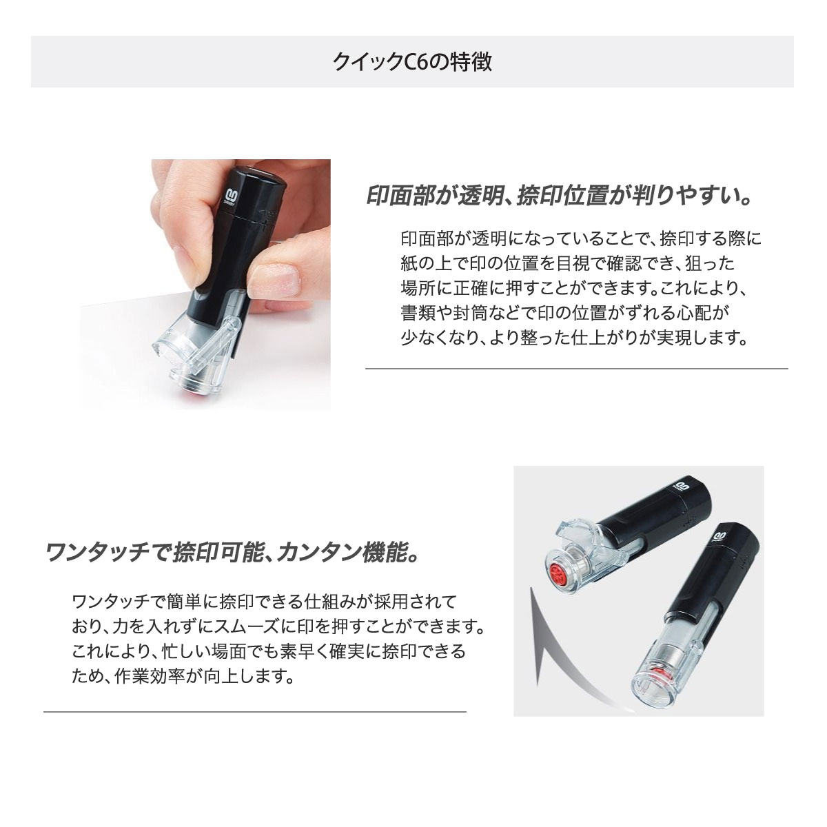 印面部分が透明になっていることで、捺印する際に紙の上で印の位置を目視で確認でき、狙った場所に正確に押すことができます。