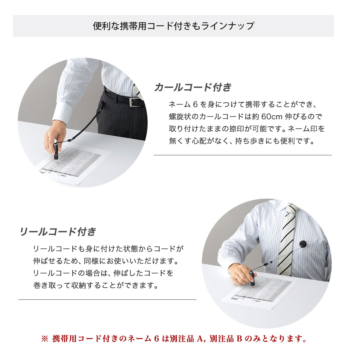 ※ 携帯用コード付きのネーム6は別注品A, 別注品Bのみとなります。