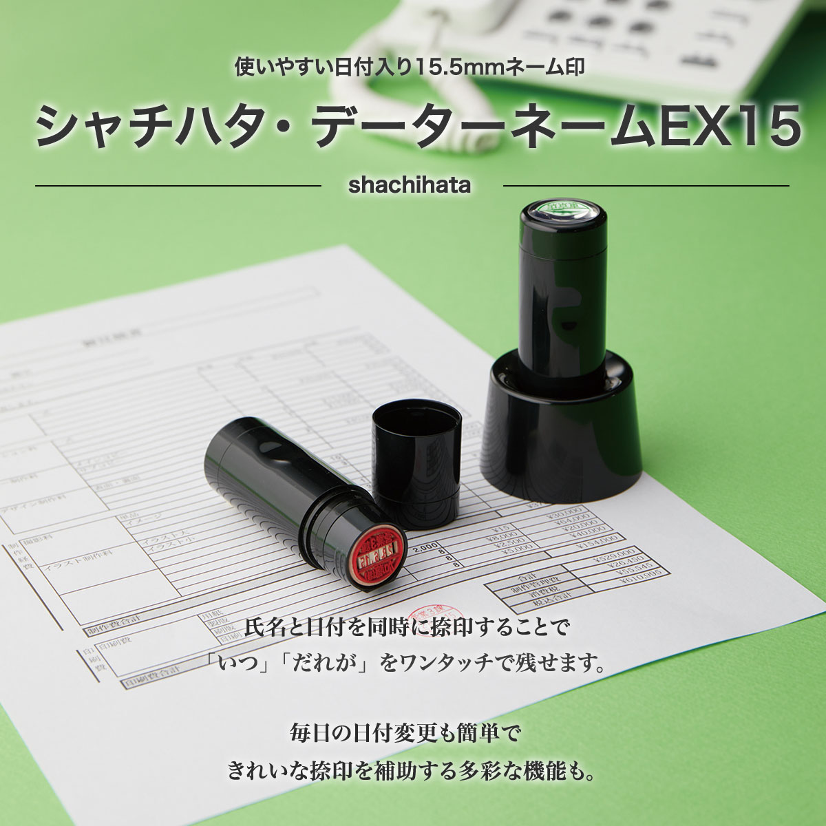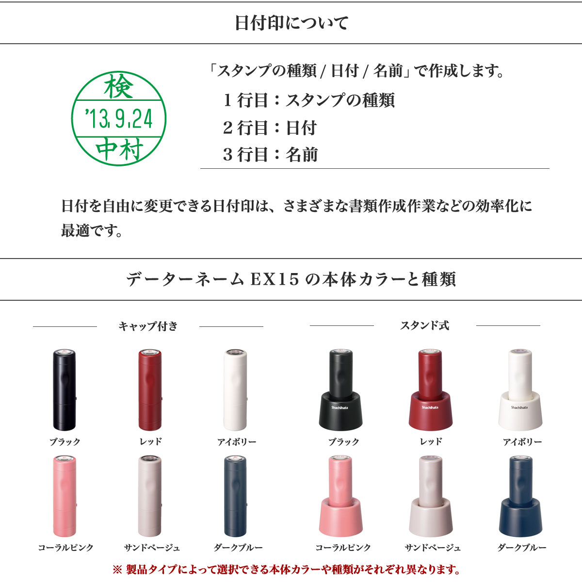 シャチハタ/日付入ネーム印/データネームEX 15号 キャップ式/既製品/本体+マスター部(印面)セット/インキ色 : 6色から選択可能
