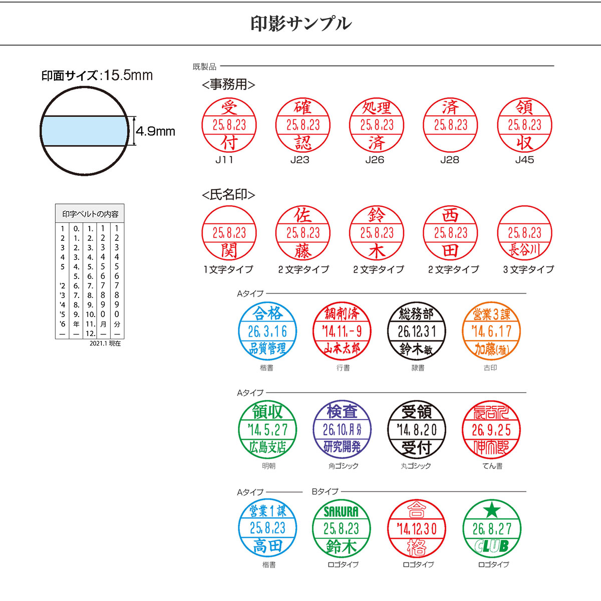 日付文字は大きくて見やすく、さらにキャップに拡大レンズが装着されているため捺印前確認ではさらに見やすくなっております。