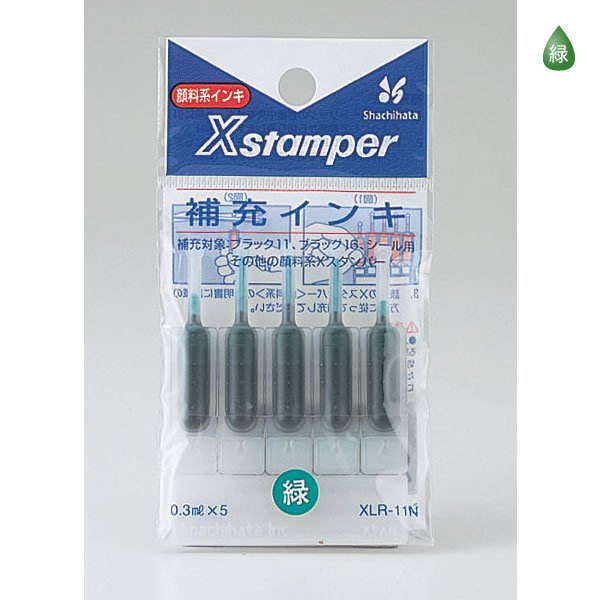 シャチハタ/顔料系補充インキ0.3mlx5/XLR-11N/ブラック11/ブラック16/シール用/データーネーム用(緑)/コード:35706 |