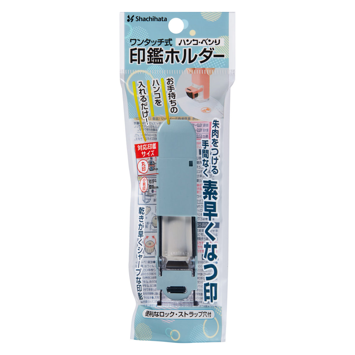 シャチハタ/ワンタッチ式印鑑ホルダー/ハンコ・ベンリ/グレイッシュブルー/CPHC-A2/コード:17624