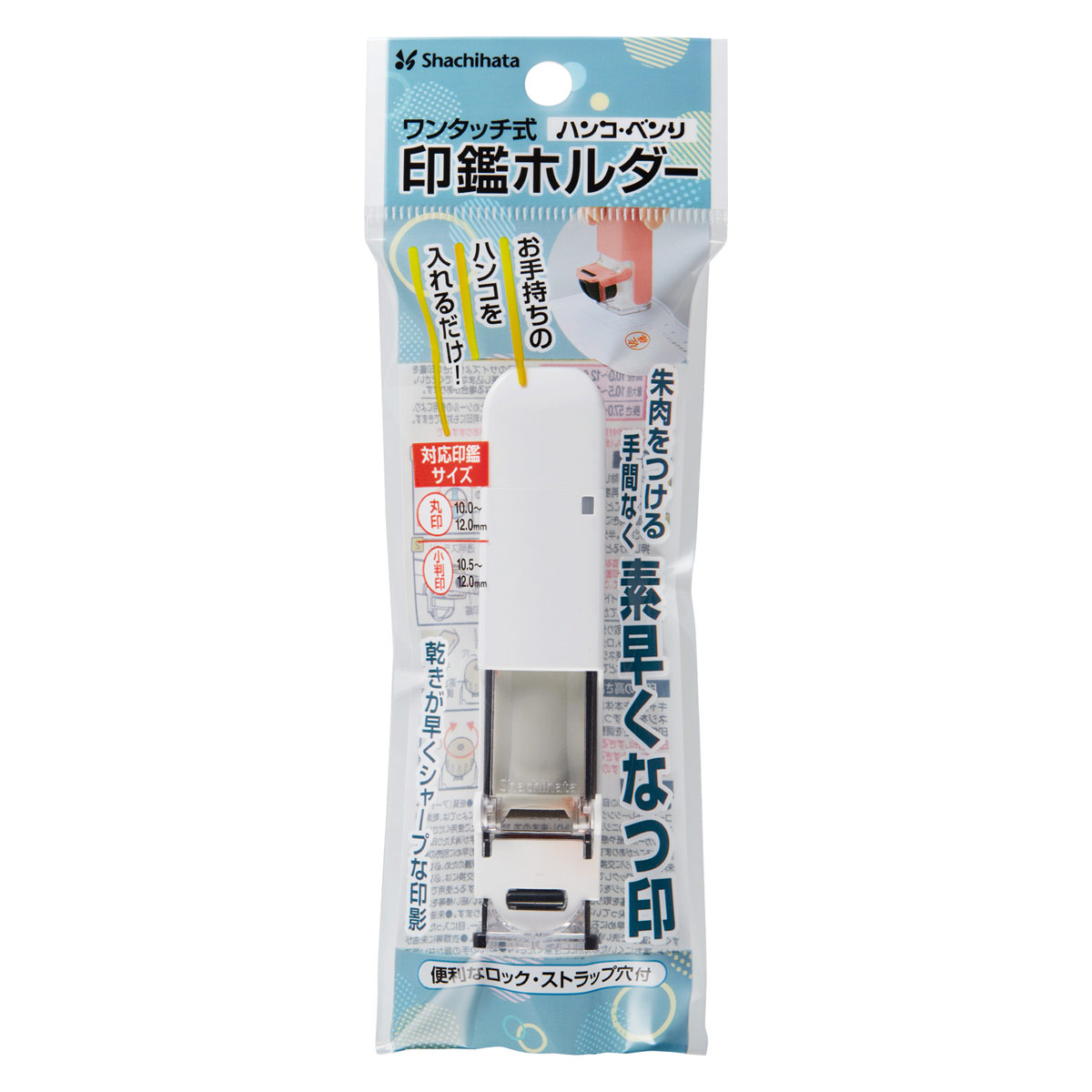 | 商品名称 | シャチハタ/ワンタッチ式印鑑ホルダー/ハンコ・ベンリ/ホワイト/CPHC-A6/コード:17628 |