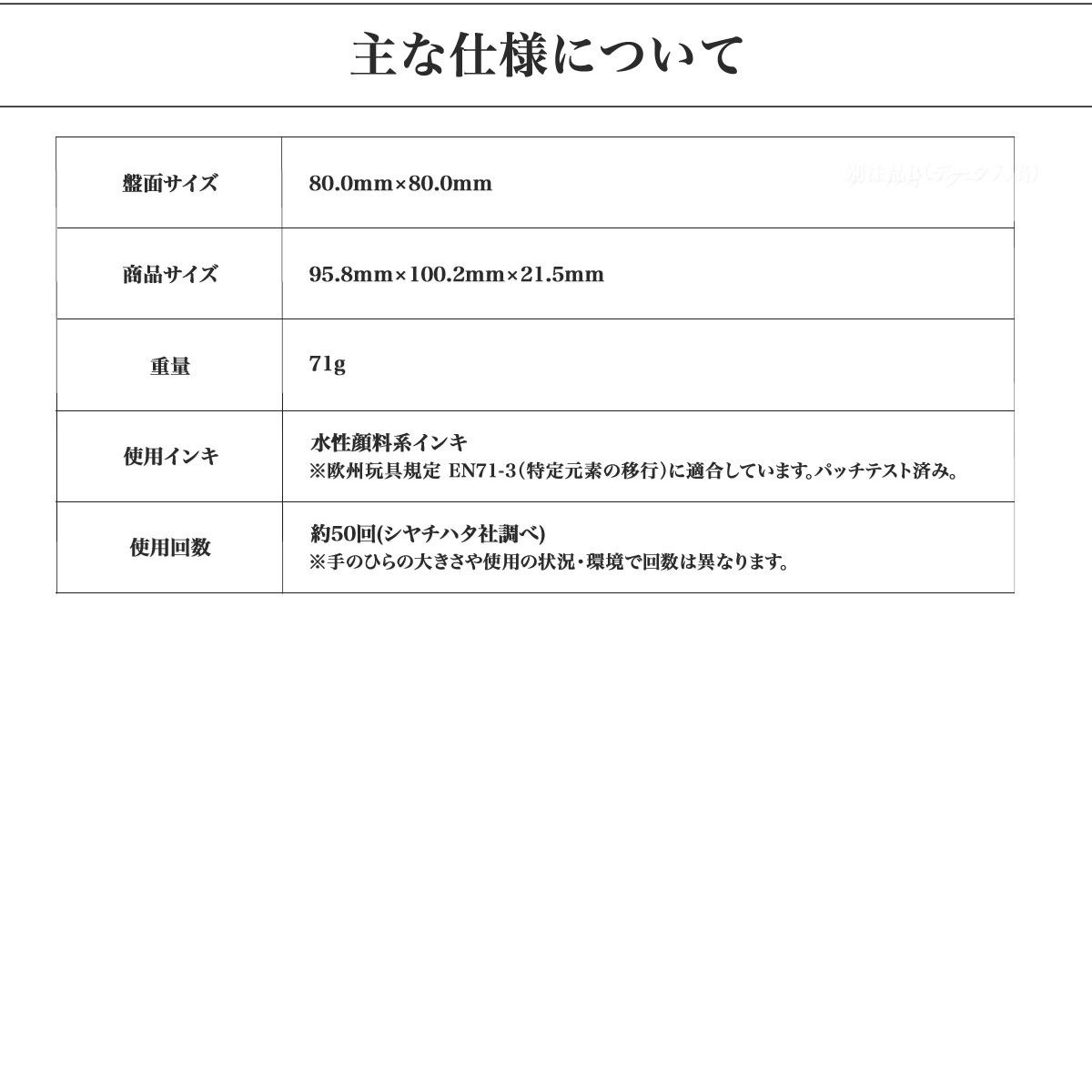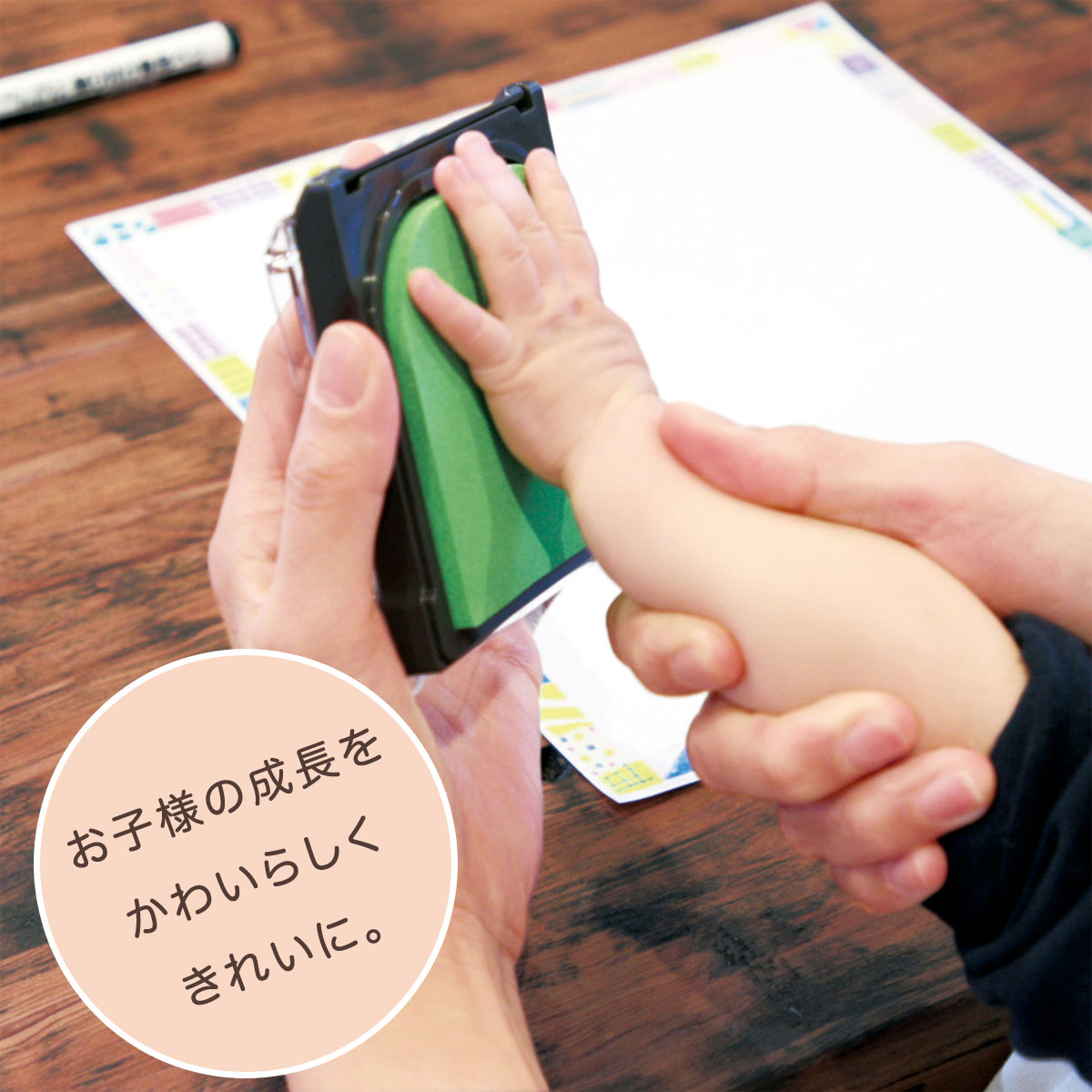 またお子様の安全を考え、インキは水洗いやティッシュ拭きなどで簡単に落ちる肌に優しい仕様となっておりますので安心してお使いください。