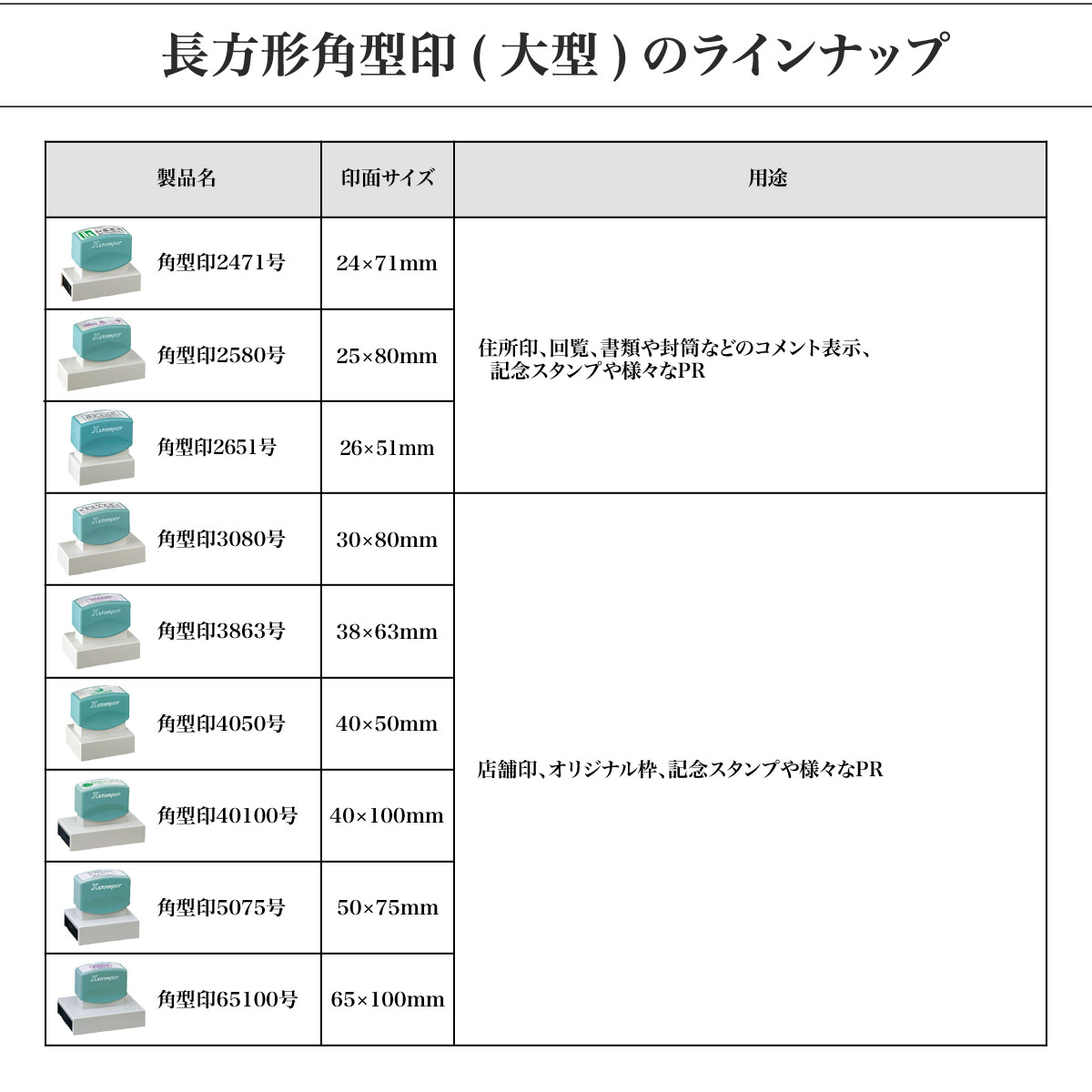 | 印面サイズ | 製品名 | 用途 |
