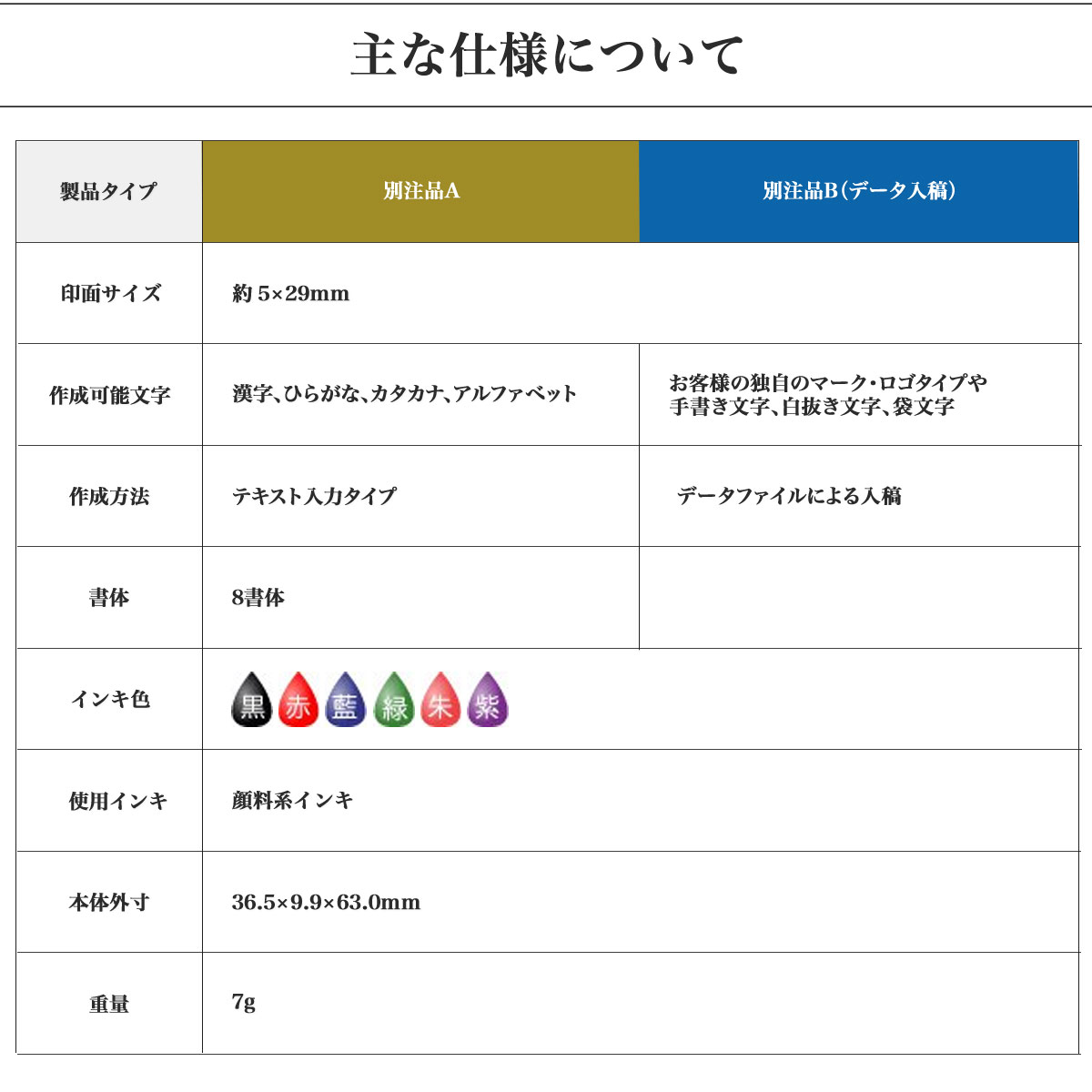 | 印面サイズ | 5×29mm | |