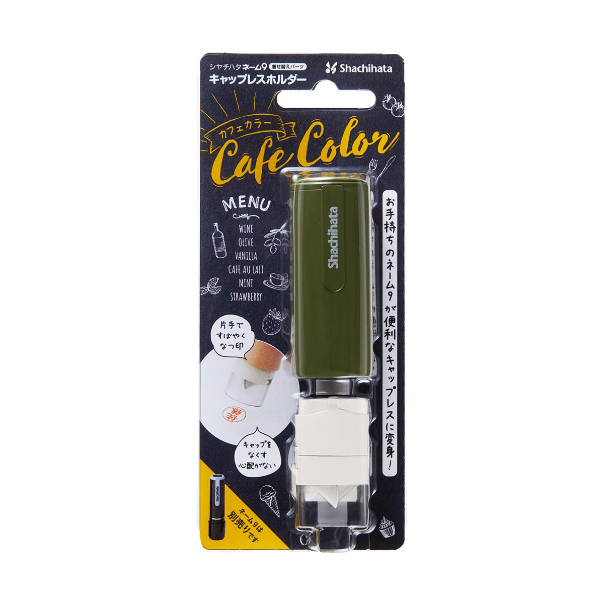 シャチハタ/ネーム9着せ替えパーツ/キャップレスホルダー カフェカラー/オリーブ/XL-9PCL-CF5/コード:54925