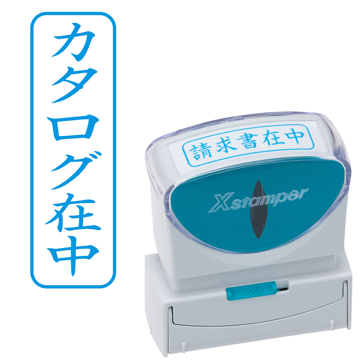 Xstamperビジネス用スタンプ/キャップレスB型/インキ色:藍/印面「カタログ在中」/タテ/印面サイズ:13×42mm/X2-B-014V3/コード:72833