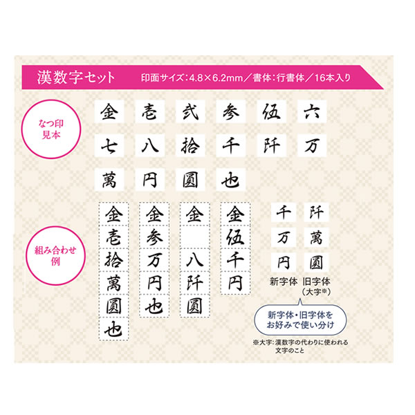 | 製品タイプ | 漢数字セット2号 | 算用数字セット5号 |