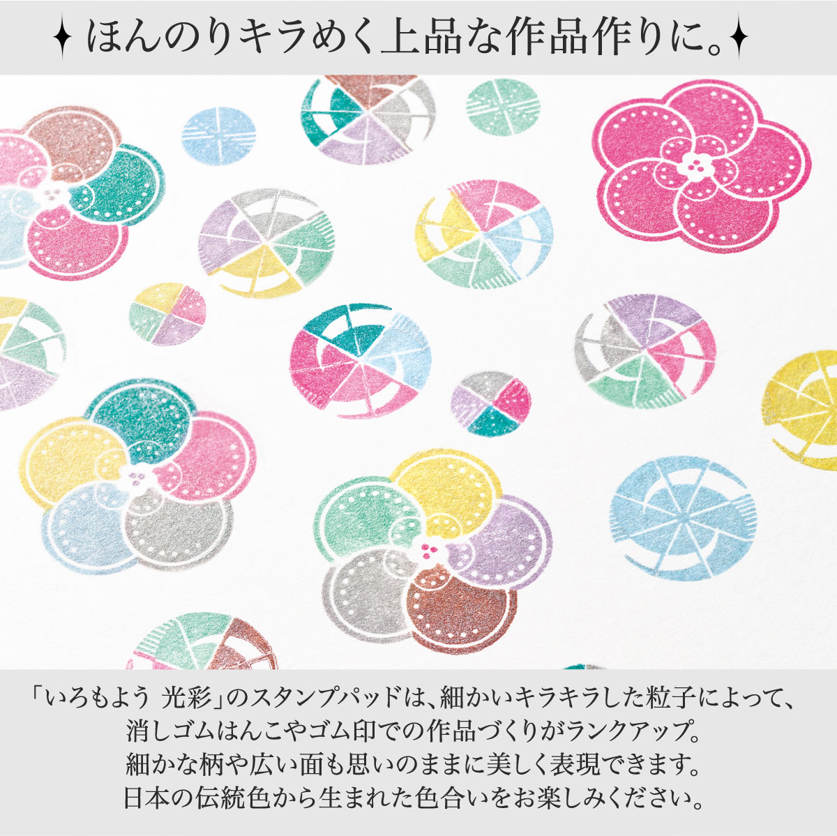 ほんのりキラめくインキのスタンプ台、「いろもよう 光彩」のミニサイズバージョンです。