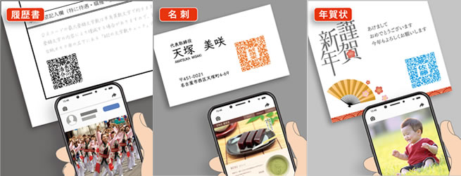 URLから変換したQRコードと名前を一度に捺すことのできる、「myQR」。捺した印影のQRコードをスマートフォンで読み取ると登録されたサイトに繋がります。履歴書や年賀状・名刺などに捺して、紙には書けない動画や写真をQRコードで伝えられる、「自己主張の新しいカタチ」を提案するネームスタンプです。
