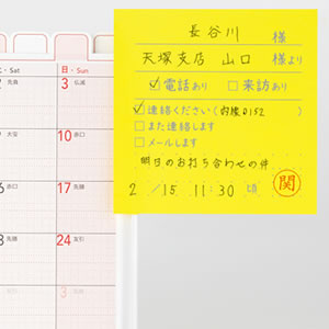 お手持ちの75×75mm角のふせんやメモにポンと捺すだけで見やすくわかりやすいチェック式メモに変身させることができます。書体には優しい印象を与える手書き風フォントを採用しました。