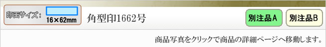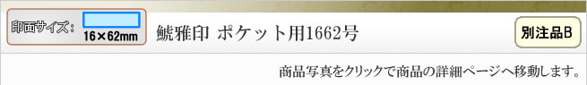 ![]() シャチハタ・Xスタンパー・ 角型印1662号[XH-1662] 印面16×62mm ![]() (テキスト入力タイプ) インク色 : 6色から選択可能 ¥6,270(税込) ¥5,960(税込) |
