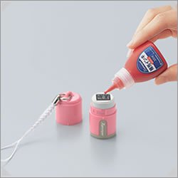 インキ内蔵式なのでそのまま連続なつ印でき、またストラップが付いているので持ち運びにも便利です。